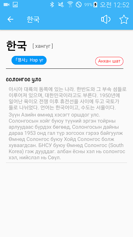 词汇 - 包含约50万字初级,中级,高级水平的韩国蒙古语词典应用