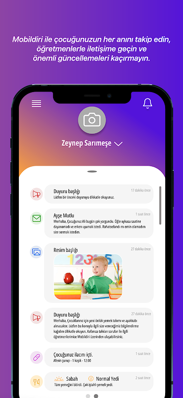 通过发送即时父母立即采取教师的照片,以保证孩子的父母生活的时刻。此外,儿童吃他们的膳食一顿一顿的信息的家长,药物也可以发送后续信息。