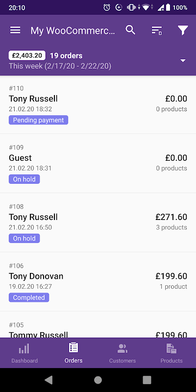 使用 WooCommerce 移动助手,您可以随时随地访问实时商店数据报告,触手可及。使用它,无论您身在何处,您都可以通过 Android 设备监控您的产品、客户和订单的关键详细信息。