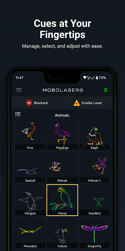Pangolin Laser Systems, Inc. 的 MoboLaser 是一款开创性的移动应用程序,重新定义了激光表演控制。这款直观的应用程序将 QuickShow 和 BEYOND 激光表演软件的功能带到您的指尖。不仅如此,MoboLaser 还使您能够为您的表演增添新的创造力和兴奋感。