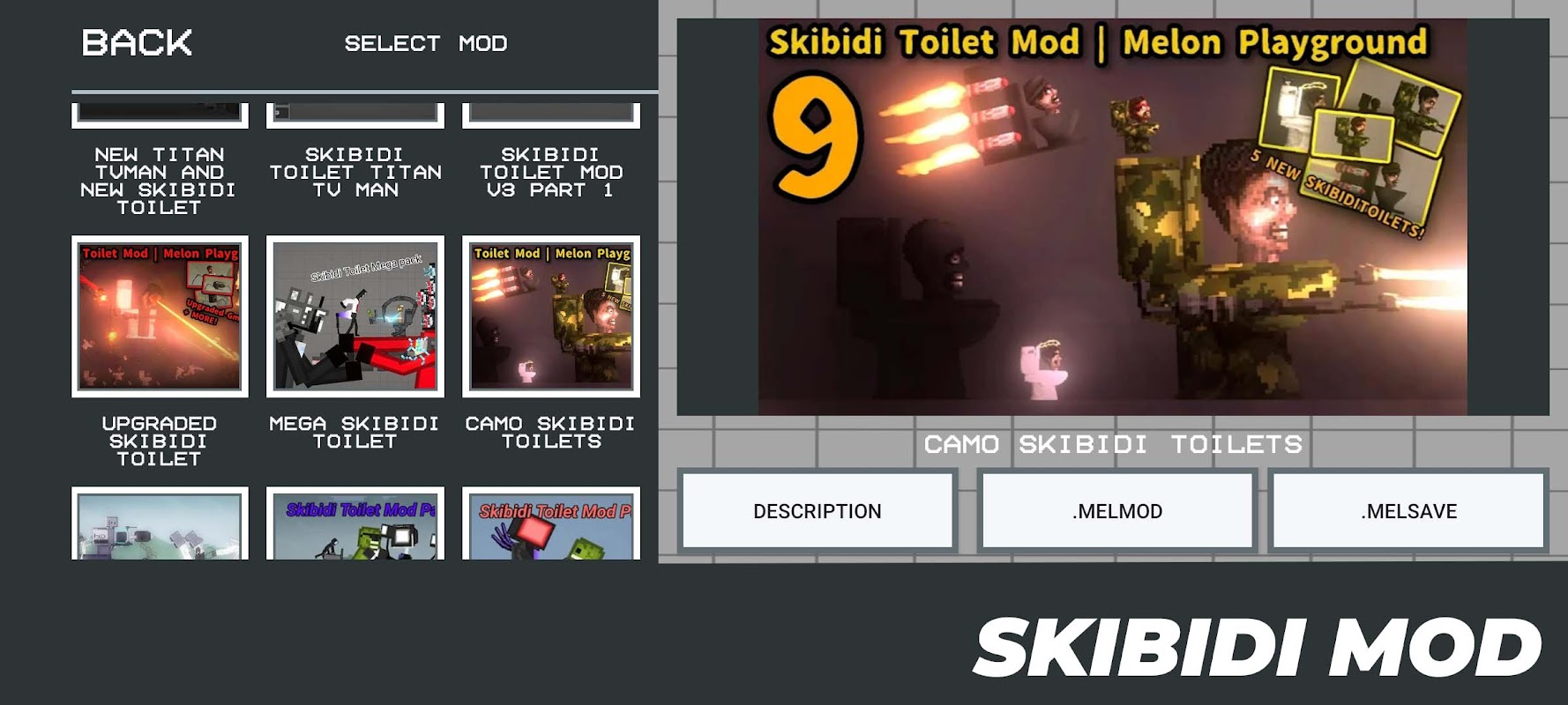 立即下载 Skibidi Bathroom Mod Melon Playground,享受 Melon Playground 沙盒世界的所有新功能!