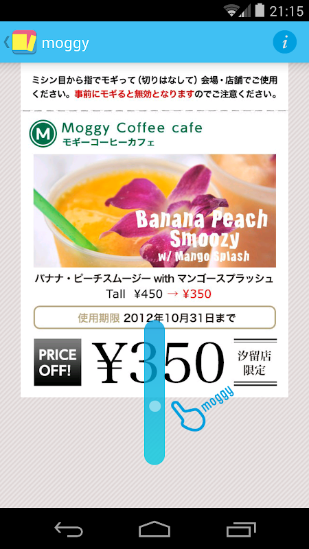 ☆新感覚☆ 紙と同じようにモギって使えるクーポンアプリ『moggy』