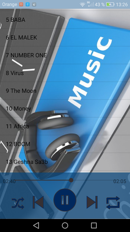 Avec l'application des chansons de Mohamed Ramadan sans Net 2020, vous pouvez quitter l'application ou verrouiller le téléphone et la musique sera PLAYER