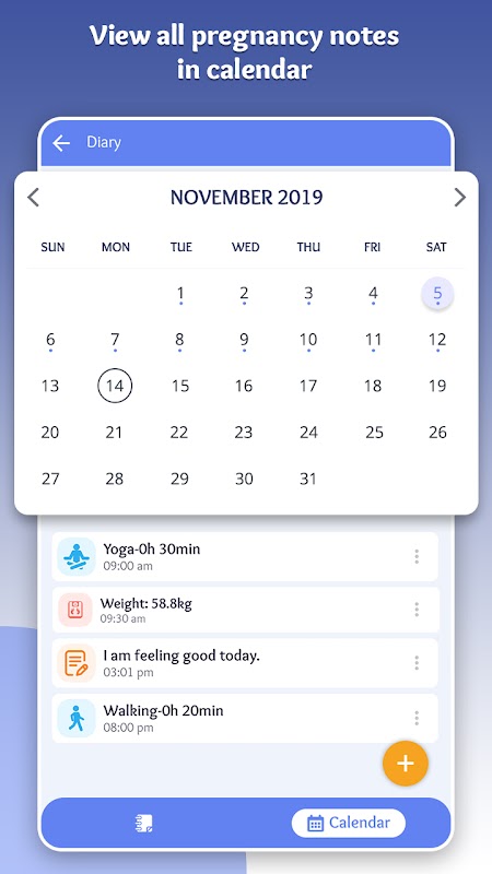 有助于记录您的健康状况,例如睡眠,体育锻炼,情绪,体重,血压和营养),个人笔记,婴儿的第一次踢和撞照片。