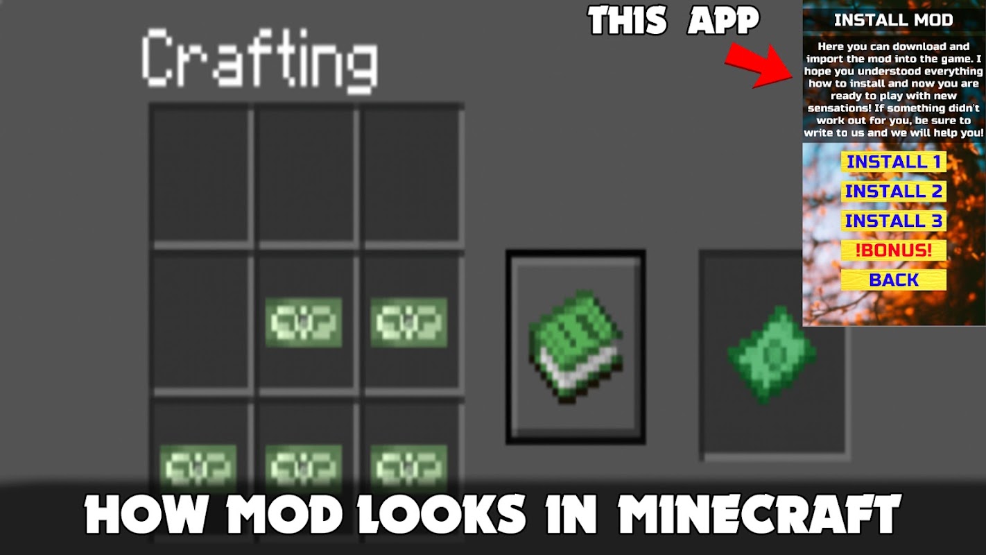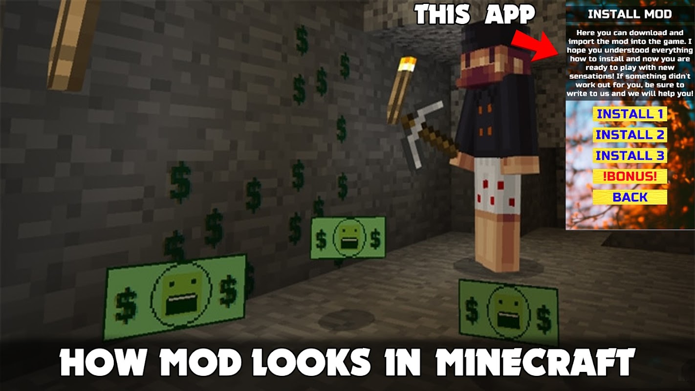 🤩 Money Mod for Minecraft PE 🤩 this is a launcher app that helps you import mods into a game called MCPE!