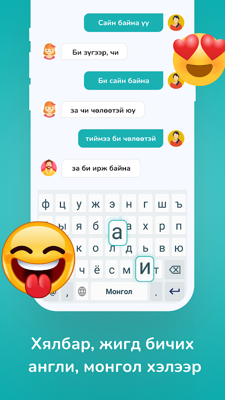 带有表情符号应用键盘的轻松新蒙古语打字专为想要从一开始就学习蒙古语的人而设计。蒙古语键盘和语音输入蒙古语英语键盘应用程序将帮助您在帖子上使用表情符号。这个表情符号你可以通过社交媒体网站与您的朋友和其他人分享。