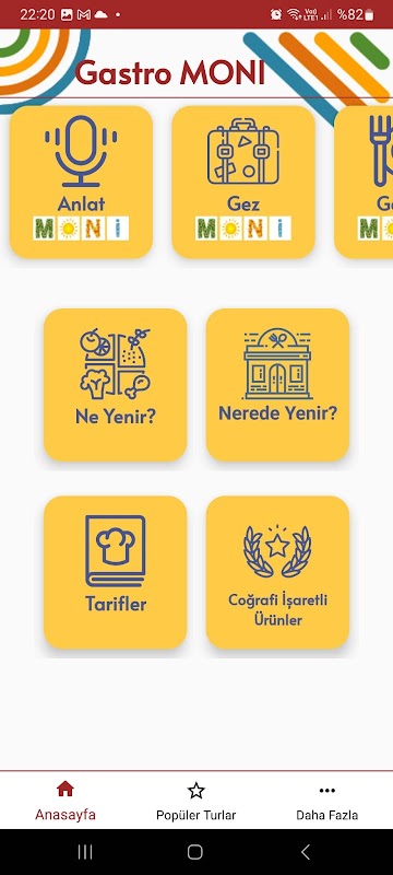 在移动应用程序中,AnlatMoni、GezMoni、GastroMoni、KalMoni、LegendMoni、Rehber Sensin 和你知道这些吗?有区域。