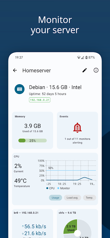 APKPure 使用签名验证功能,确保为您提供无病毒的 Monitee - Home server monitor APK 下载。