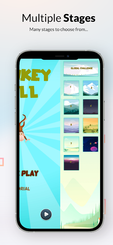 一只猴子从高处坠落!你是救世主。你需要通过发出指令来控制猴子,并防止它撞到障碍物。