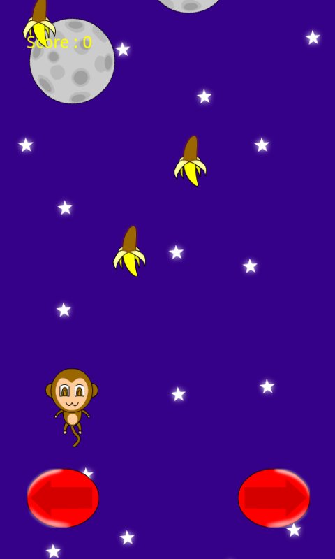 In this game, player controls the monkey and help it navigate through the space to collect the "energy banana" and avoid the asteriods. Tap and choose your favorite monkey and start playing, to control the monkey, simply tap the left or the right arrows.