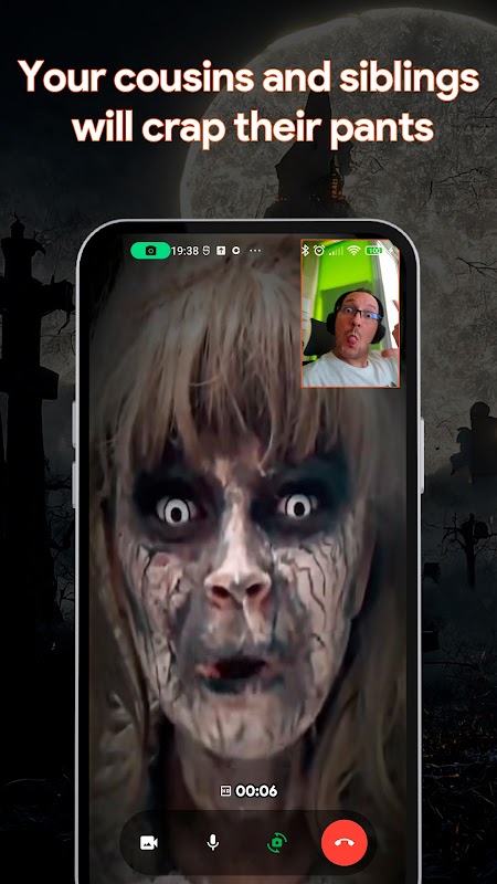 - 真实的假电话:与各种怪物进行令人恐惧的逼真视频通话,并配有振动效果,让您更加颤抖。