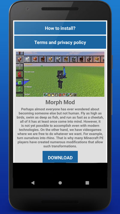 The Morph Mod for Minecraft gives you the ability to turn into any mob, item or character in Minecraft. This mod is perfect for those who want to add a bit of excitement and creativity to their game. With this mod, you can morph into anyone or anything you want, giving you the ultimate power in Minecraft.