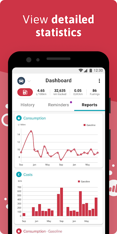 - 全面的燃油追踪(成本、效率、平均值)
