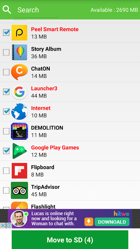 • Move apps to external sd card