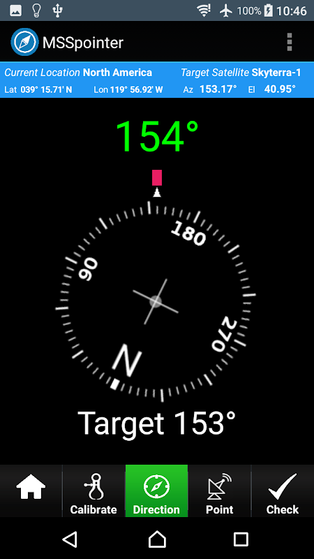 MSSpointer guides you through the process of pointing your fixed site terminal at the optimal MSS satellite for your current location. This will allow you to achieve maxmimum performance from the MSS network.