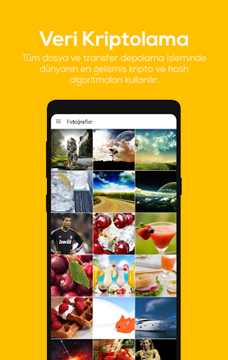 Tüm dosya ve transfer depolama işleminde dünyanın en gelişmiş kripto ve hash algoritmaları kullanılır. MTU Bulut içerisindeki tüm veriler istendiğinde kriptolu olarak saklanır.