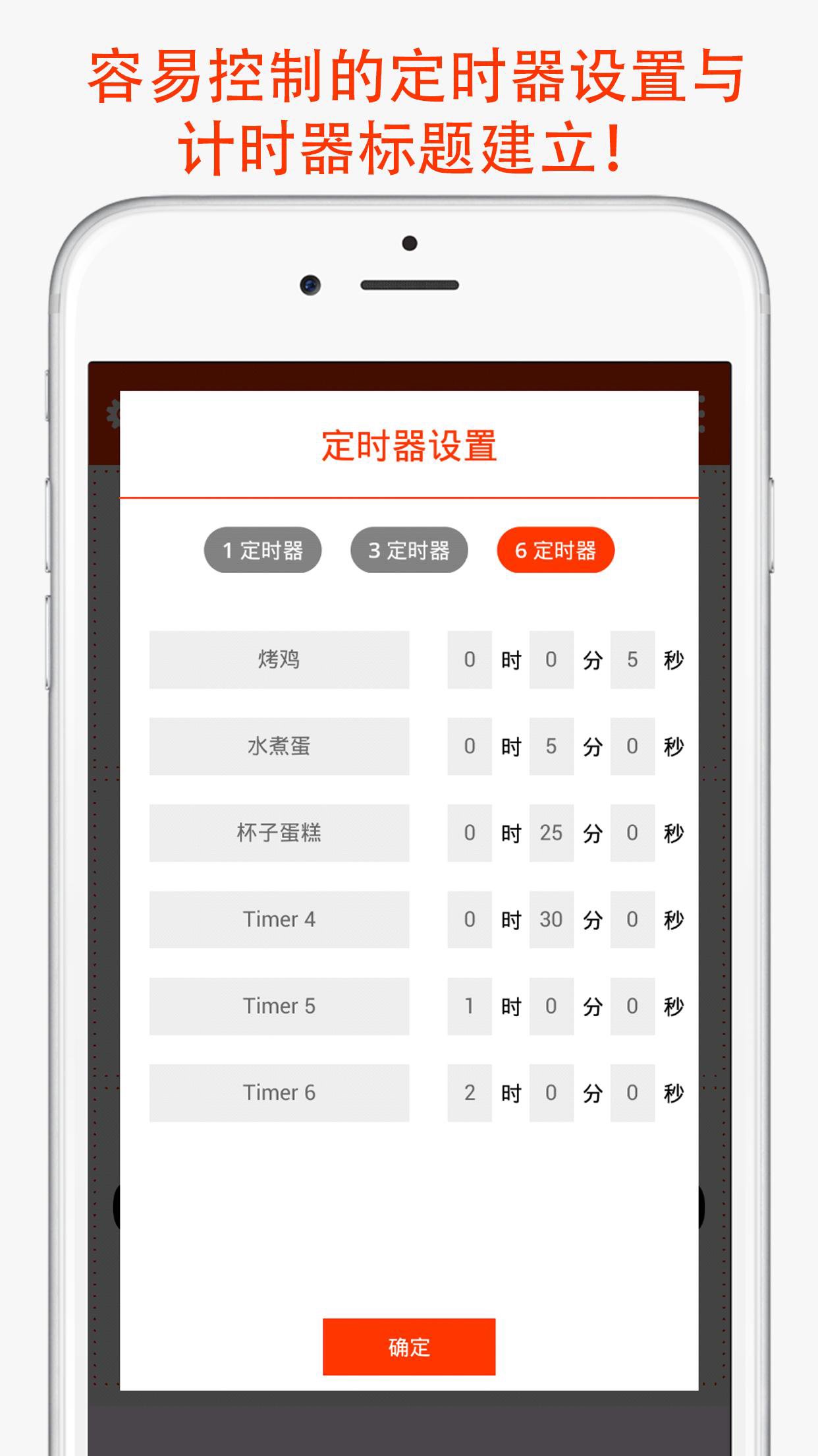 • 提供多达六个以上的计时器让您依据自己的需求使用。