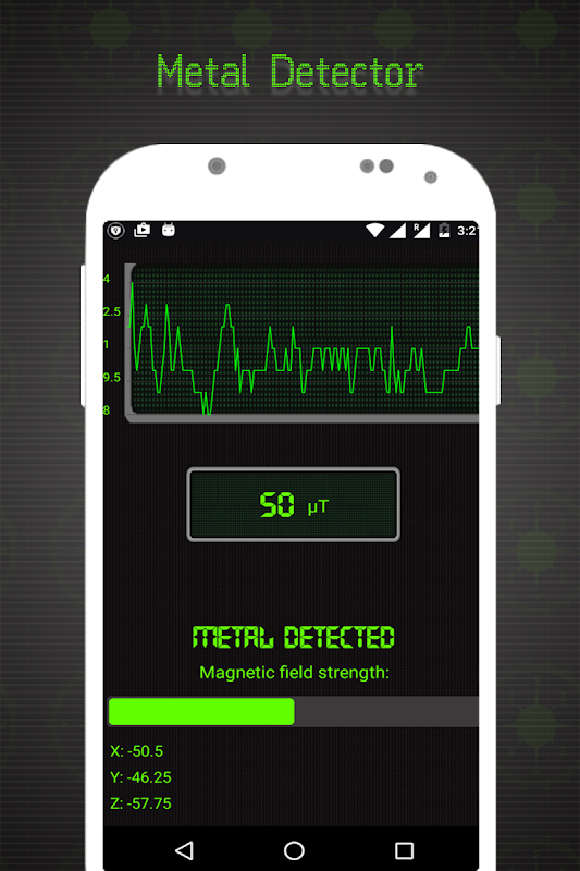 Detect magnetic field of nearby materials and observe it on real time chart.