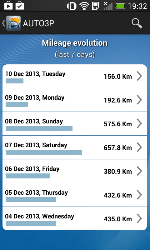 •该应用程序显示了你每天的行驶里程演变为每个驱动程序,以及当前和过去的旅行。