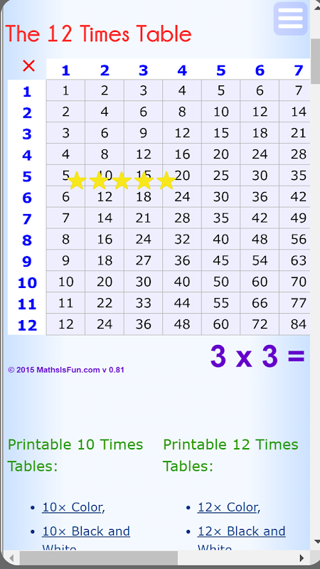 它生成乘法表。它可以帮助您学习乘法。