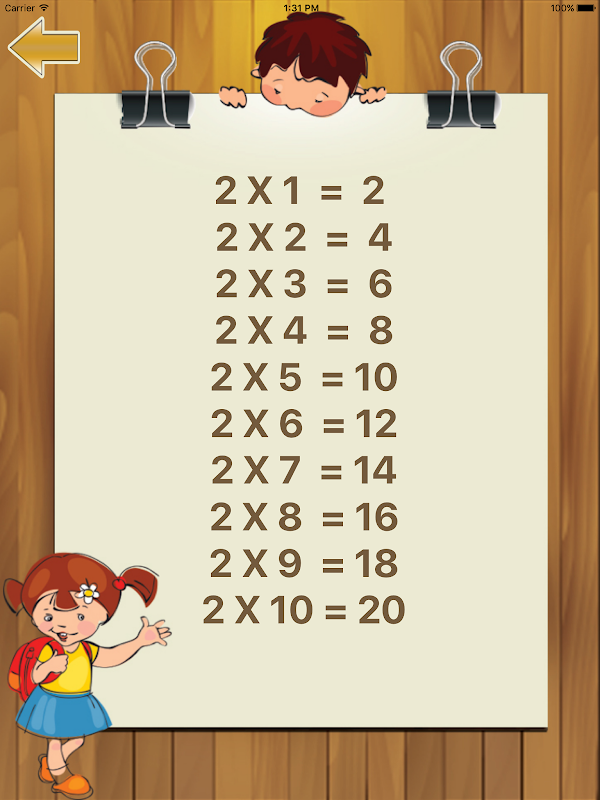 يهدف التطبيق الى تعليم الاطفال جداول الضرب من ٢ الى ١٠ ويمكنك اختبار الطفل في كل جدول منفصل أو اختباره في جميع الجدوال