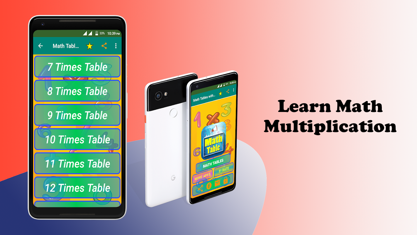This is Math Multiplication Table learning app for teen-agers laterally with audio voice support math multiplication table game. It is cool and easy to use and without parental helps are required math multiplication table app. All multiples tables will be displayed one by one and app will speak one by one only click on speaker.