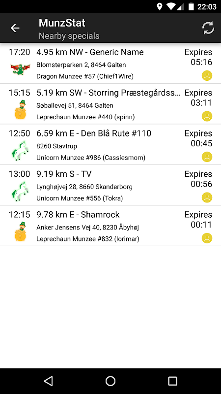 MunzStat is an Android app for the Munzee player who likes keeping up with the daily score development and activity on his or her profile. The app displays a list of activity (captures, captures on your munzees, and deploys) for today, or any other day.