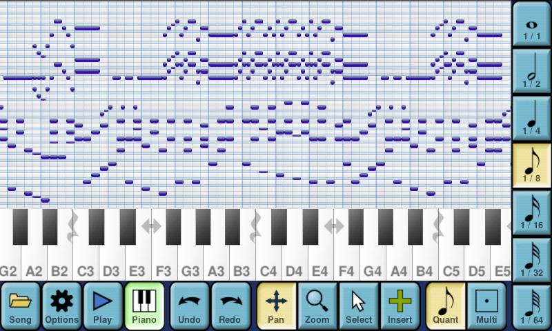MusePad使用钢琴卷风格的网格显示笔记和钢琴键盘输入。你输入采用了钢琴的音符,他们似乎说明电网。之后,你可以直接删除笔记对电网,添加更多的票据攻对电网。