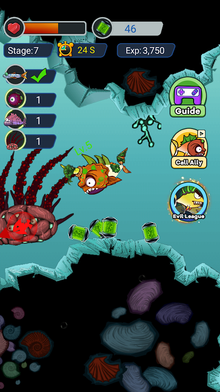 《变异鱼》是一款充满冒险乐趣的休闲游戏。游戏规则简单。玩家只需控制自己的鱼,通过吞食其他鱼来让自己变得越来越强,并完成每个关卡的任务即可通关。在这款游戏中,你的任务只有一个,那就是吃掉其他鱼。你准备好了吗?