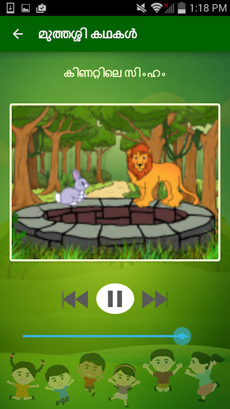 每一个孩子喜欢的故事,如果是自己的亲人告知,他们会更乐意听取他们。假设,如果这个故事是你的母语,这将是更有趣。 Vcodeinfotech现在已经提出通过您的手机告诉在马来亚你年轻的故事的创意。像每一个故事奶奶中有马拉雅拉姆语也有很多的故事。所有这些“MUTHASSIKKADAKAL”包括动物,国王,王后以及来自各行各业的各种其它字符。斯巴鲁:在豹的故事;拉姆:帽子卖家故事或贪婪的国王在“黄金故事”都一定会接受你的孩子和他们的朋友大汗。在此应用程序的apologues由一个可爱的声音,一定会为你的孩子非常有吸引力的惊人念念有词。如果你是一个NRI它给讲故事 - 在你的母语听到你们的老奶奶的故事的双重机会。这个想法在每个故事的结局发人深省的箴言或建议的作品将唤起他们的小心灵道德和社会意识。我们毫不怀疑,这个应用程序将被证明是对老人和孩子都一个很好的时间传递。我们选择从各种来源这些故事,我们欢迎您的宝贵建议和意见,使之在未来updations更加完美。