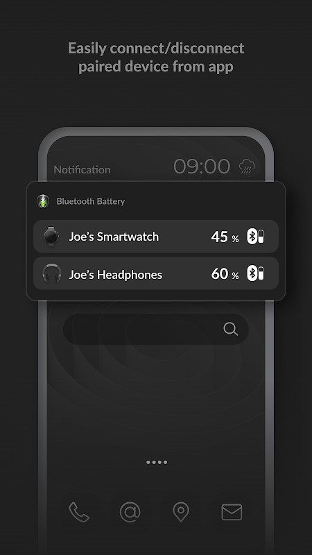 使用此应用程序可快速查看已连接蓝牙设备(如扬声器🔈、耳塞、耳机🎧、手表等)的电池电量🔋百分比。