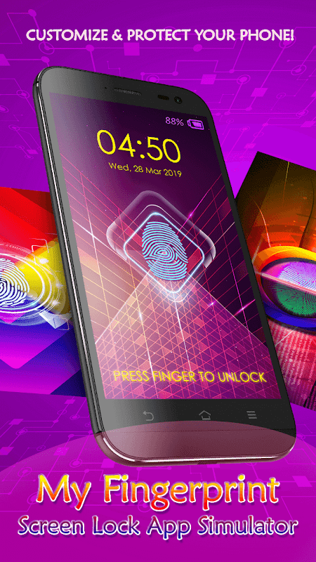 ✲ The last word in technology when it comes to security locks is without a doubt a “fingerprint scanner”. Only one person is granted access to anything that has this kind of device installed, and due to that, it is unique, and most likely the safest way to protect something. Nowadays, smartphones started using this kind of technology but, in order to have the option of using it, you need a previously installed “fingerprint lock”. If you happen to be a user of one of those fingerprint lacking phones, you've come to the right place! ⌘ My Fingerprint Screen Lock App Simulator ⌘ is a fingerprint simulator that will make everyone believe that you're the only person able to access your device's menu with this phenomenal “lock screen app”! So tap that Download button, and get this application for free!