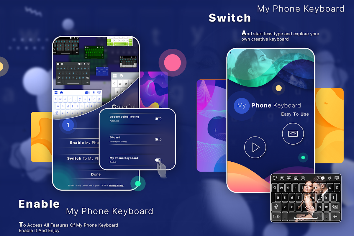 My Phone keyboard will make your phone cooler and smarter!. My Phone Keyboard is tool to customize your android keyboard with beautiful themes. My Phone Keyboard is stunning application you set your own photo as a keyboard background. My Phone Keyboard provides different Language, Font styles, Themes, Live Themes and settings.