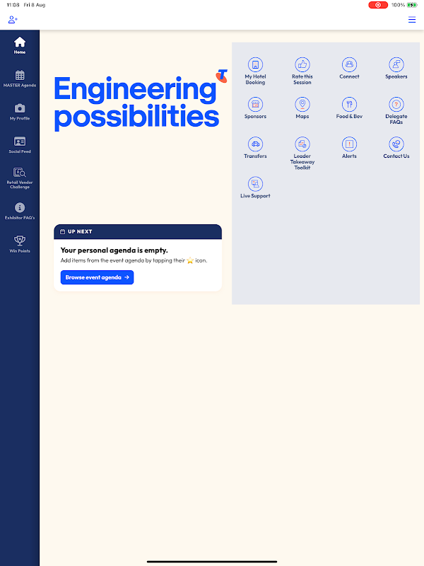 如果您已注册我们的活动之一并被引导到此处,此应用程序将帮助您充分利用您的活动体验。它使您可以访问最新的活动新闻、演讲者信息、互动功能、议程和平面图。