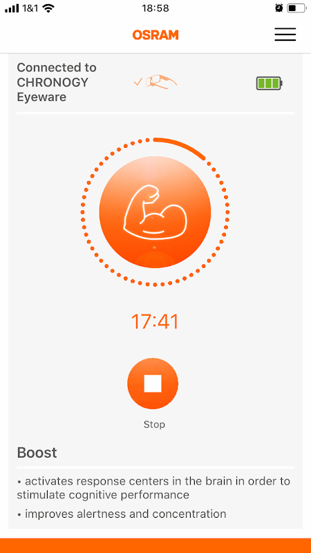 With the CHRONOGY® Eyewear and the MyCHRONOGY App you have a unique product that provides you with your personal light in the right quantity, at the right time and of the right quality. This increases your performance during the day and improves your sleep times and your deep sleep phases at night.