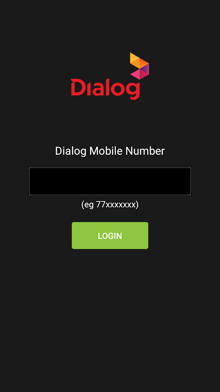 * You will be prompted to enter your mobile number and will receive a One Time Password (OTP) via SMS for authentication. Once the number is validated you will be moved to the home screen of the MyDialog app.