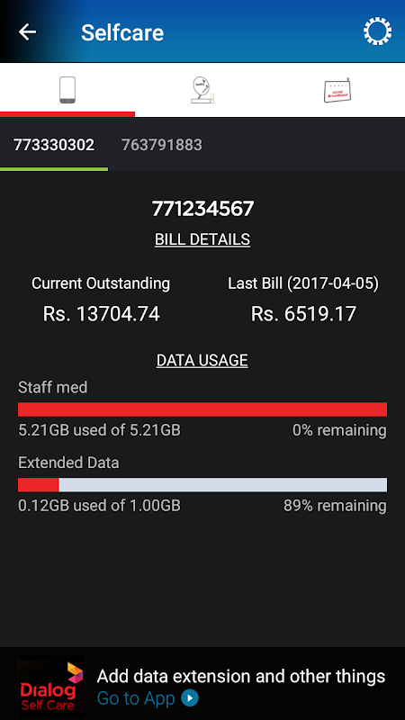 · Data usage details of Dialog Mobile postpaid connections and Home broadband connections.