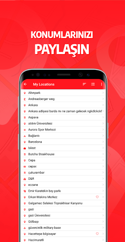 • Konumlarınızı kişilerinizle paylaşabilirsiniz veya size paylaşılan konumları kendi konumlarınıza kolayca kaydedebilirsiniz.