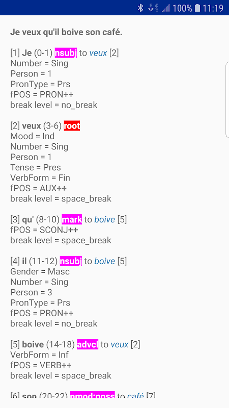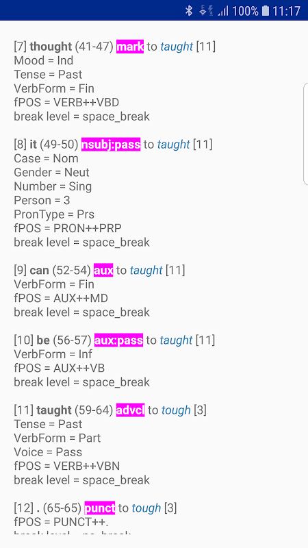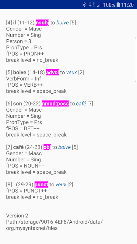 解析句子并分析其句法结构(以标记的依存关系形式)。基于Google的SyntaxNet自然语言理解和Tensorflow机器学习框架。