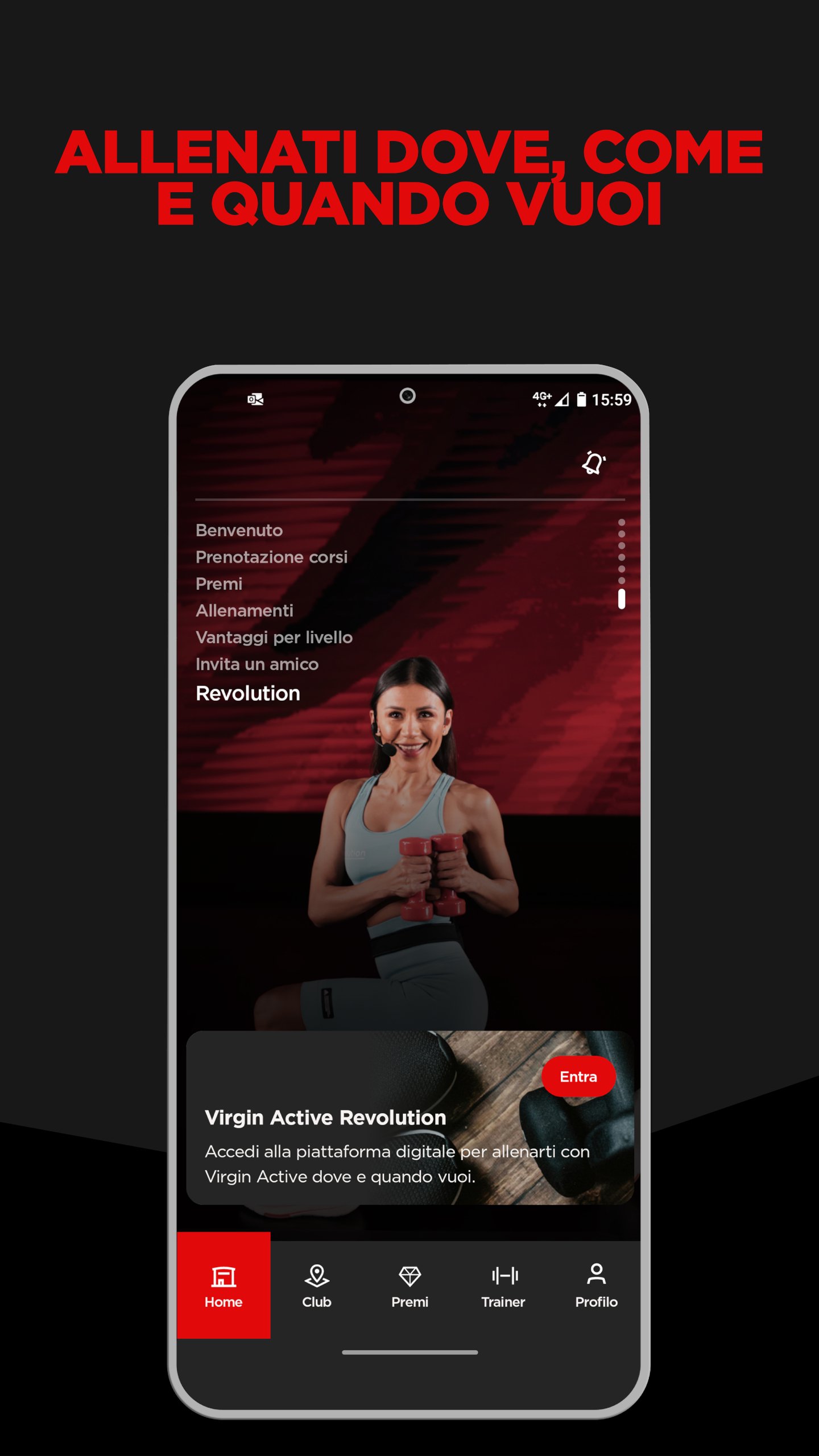 欢迎使用新的 Virgin Active 应用程序,该应用程序为所有会员打开了通过 Revolution 预订课程和远程培训的大门。
