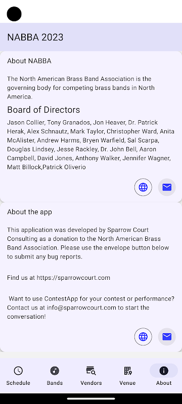 NABBA 应用程序是您与北美英式铜管乐队的直接联系。使用该应用程序了解即将举行的比赛,查看时间表,并了解有关您最喜欢的铜管乐队的更多信息!