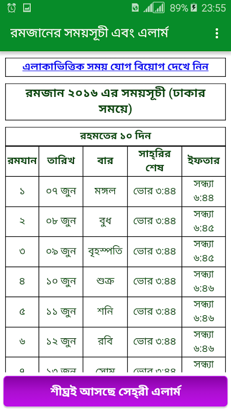 - বাংলাদেশের ৬৪ টি জেলাভিত্তিক নামাজের সময়সূচী ও নামাজের ওয়াক্তে আজান ও নোটিফিকেশনের ব্যবস্থা।