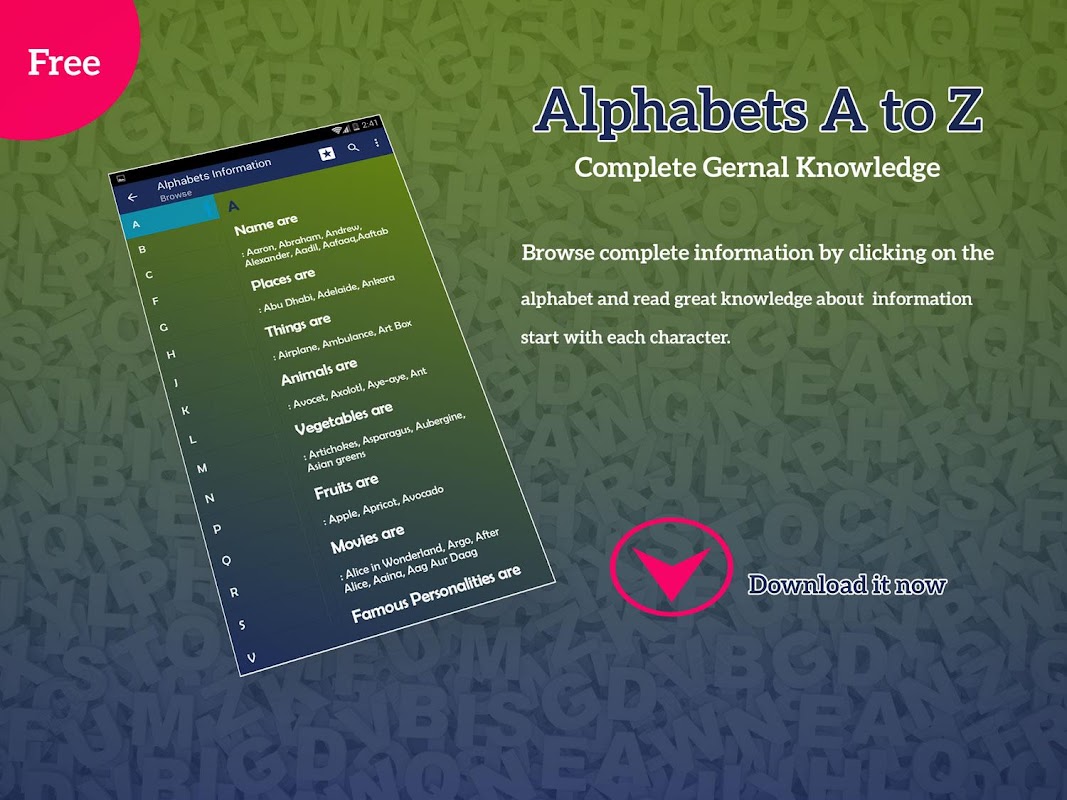 This application for everyone but especially for children, In this application you can find out the names by alphabets i.e name, place, things etc.