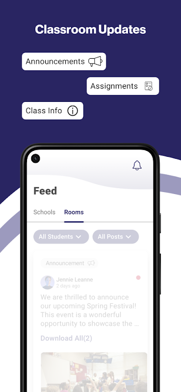 在应用程序中选择您学生的组织,确保您不会错过任何消息。