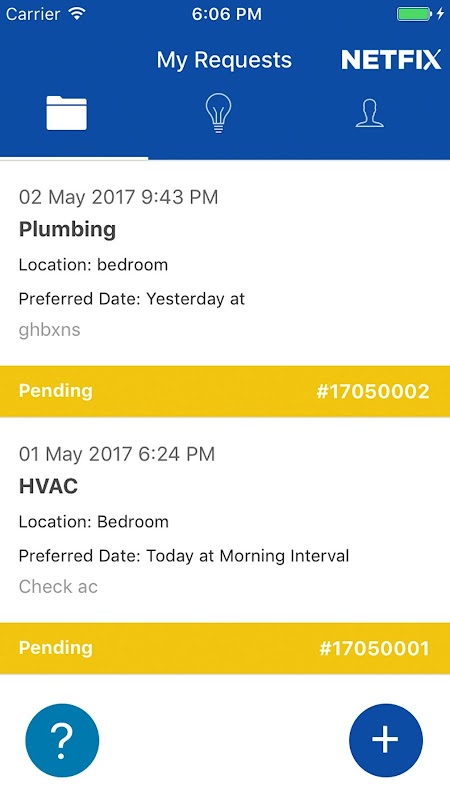 Netfix应用是可以由房地产公司的租户用于请求服务,并跟踪请求的工具。