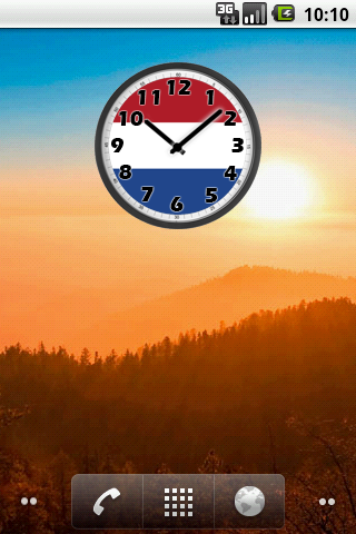 A Netherlands Flag Analog Clock Widget will show you the time on your Android Desktop! Simple, realistic and cool!!!