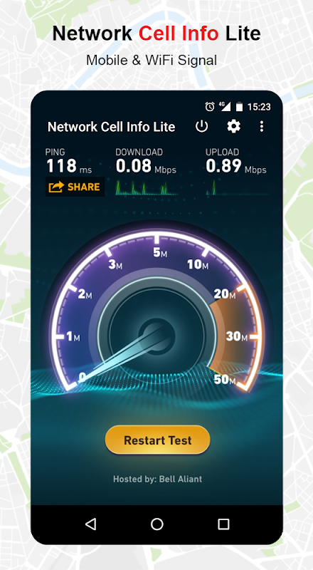 Using Network Cell Info Lite App When you facing slow WIFI speed, just one tap and the app will refresh and repair your WIFI connection. You can also check your WIFI signal strength. A very useful small size application. View your cell phone coverage heat map for 2G, 3G, and 4G LTE to see real-time personal cellular network signal information. See performance by location so you can see how signal strength is at home, in your neighborhood, at work, on the highways, or anywhere else. Track your journey to see signal strength at each location through your mobile life. If you see your phone reception is poor, check Network Cell Info Lite to find a spot for better signal strength.