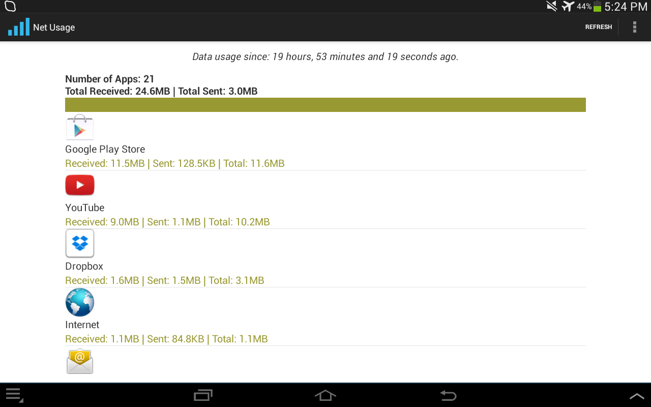 看看哪些应用程序正在使用您的设备上的数据!重置测量的开始时间。