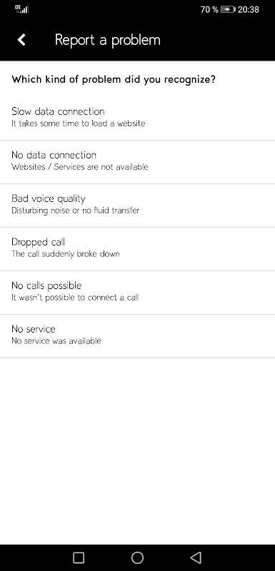 “Network Speedtest & Feedback” can be used to perform network speed tests and provide network feedbacks. Each of the speed test performed is saved and can be visualize in history. This app provides different possibilities to give a feedback, as multi-choice option or as free text comment. The app also records different KPI’s of the devices’ network and visualize them as charts.