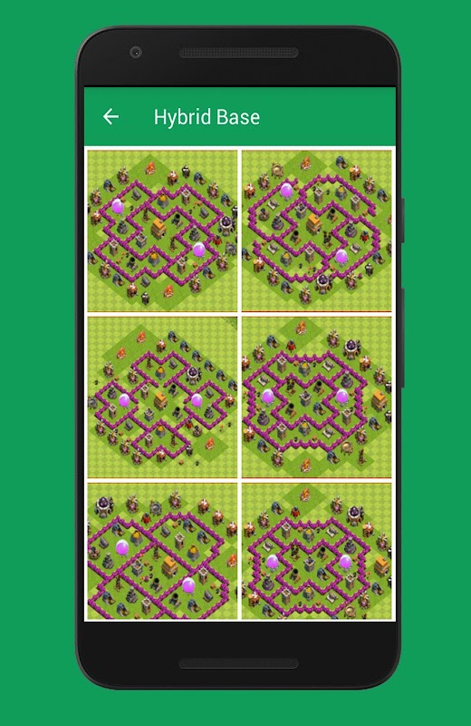 It contains Maps from Town Hall 6 with three category War, Trophy and Hybrid.